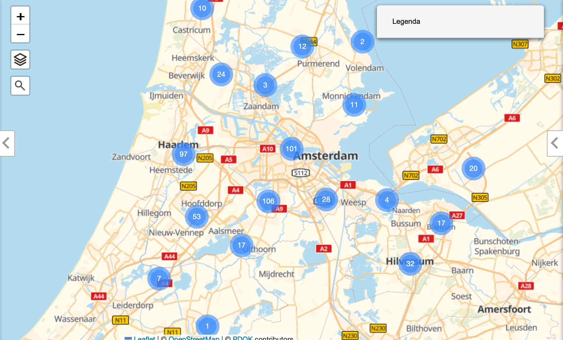 Op de Overzichtskaart tijdelijke verkeersmaatregelen vindt u actuele informatie over tijdelijke verkeersmaatregelen vanwege wegwerkzaamheden of evenementen in Noord-Holland. Als u op RESET (rechtsboven op de pagina) klikt krijgt u een overzicht van geheel Nederland te zien.